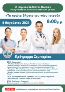 Ο Ιατρικός Σύλλογος Πατρών διοργανώνει διαδικτυακή εκδήλωση με θέμα: «Τα πρώτα βήματα του νέου ιατρού» την Τετάρτη 4 Αυγούστου 2021 και ώρα 8 μμ