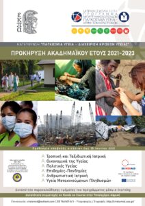 Το Τμήμα Ιατρικής της Σχολής Επιστημών Υγείας του Εθνικού και Καποδιστριακού Πανεπιστημίου Αθηνών οργανώνει και λειτουργεί το μοναδικό στην Ελλάδα Πρόγραμμα Μεταπτυχιακών Σπουδών στην «Παγκόσμια Υγεία –Ιατρική των Καταστροφών»(τροποποίηση του τίτλου του ΠΜΣ «Διεθνής Ιατρική-Διαχείριση Κρίσεων Υγείας»)