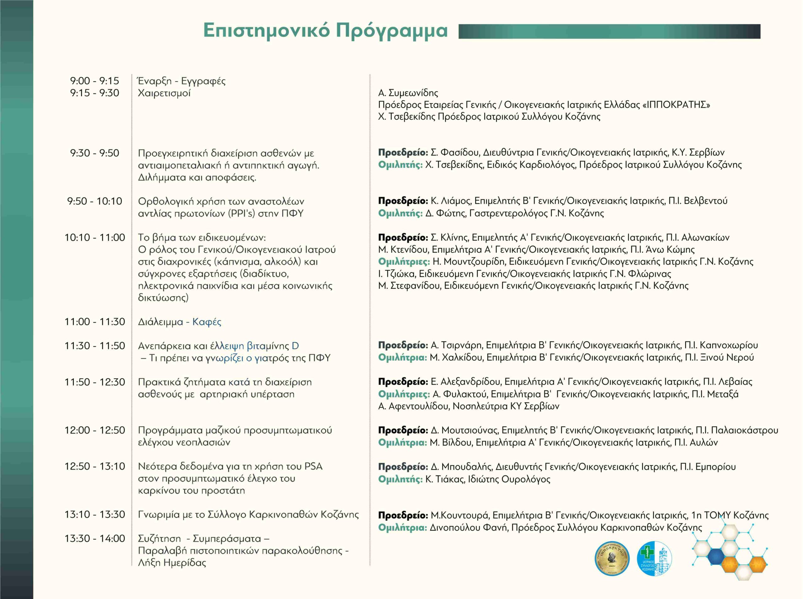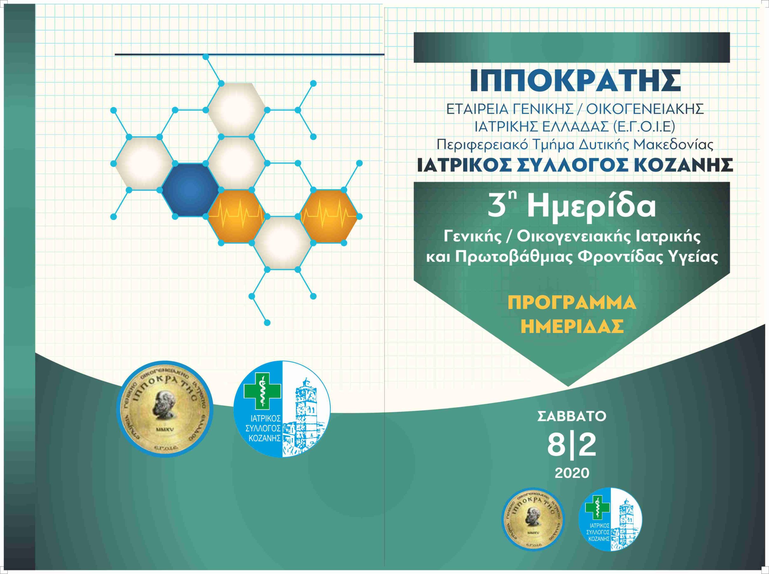 3η Ημερίδα Γενικής/Οικογενειακής και Πρωτοβάθμιας Φροντίδας, Σάββατο 8/2/2020 στην αίθουσα του Ιατρικού Συλλόγου Κοζάνης Ξεν. Τριανταφυλλίδη 19, 1ος όροφος.